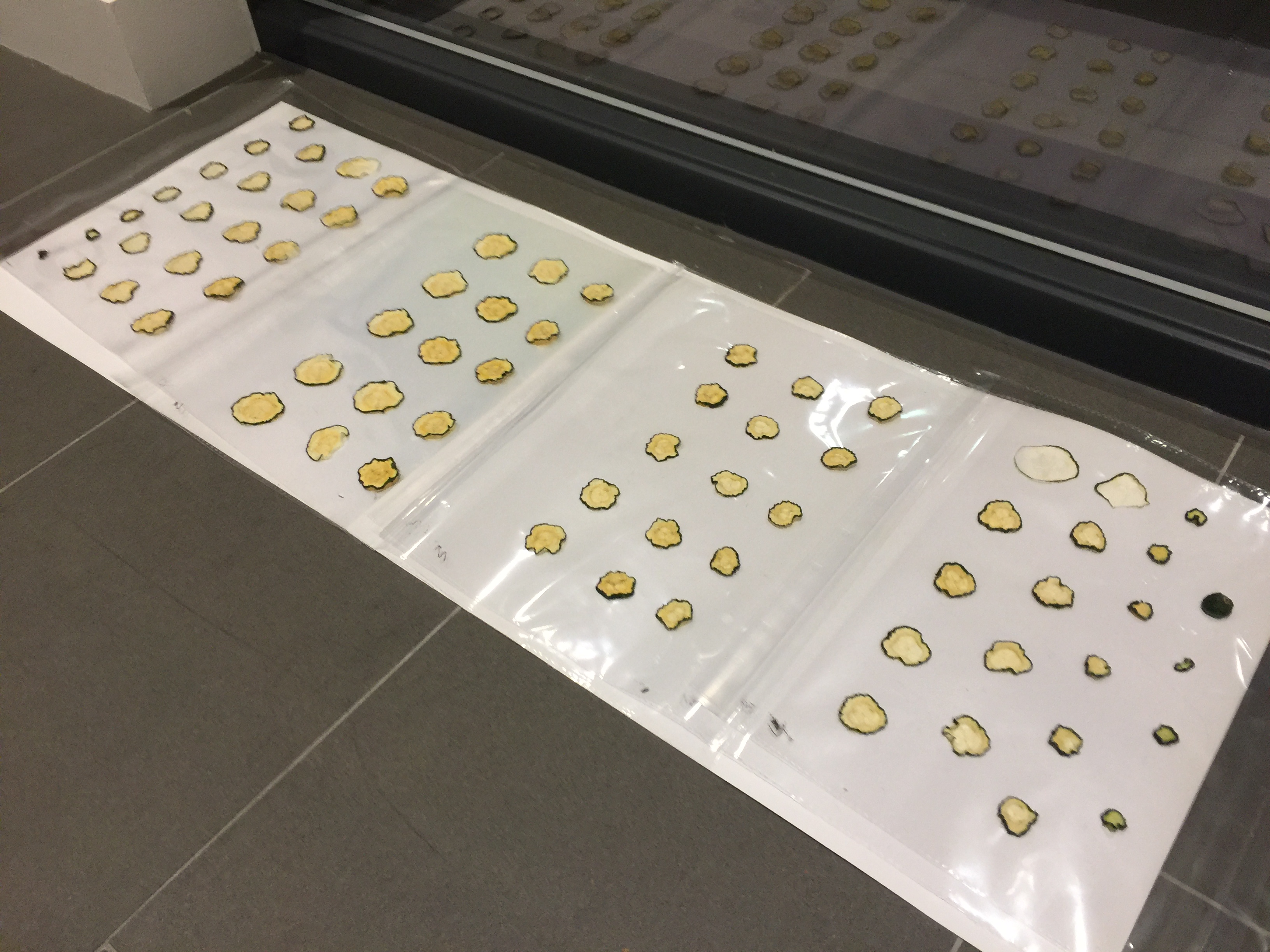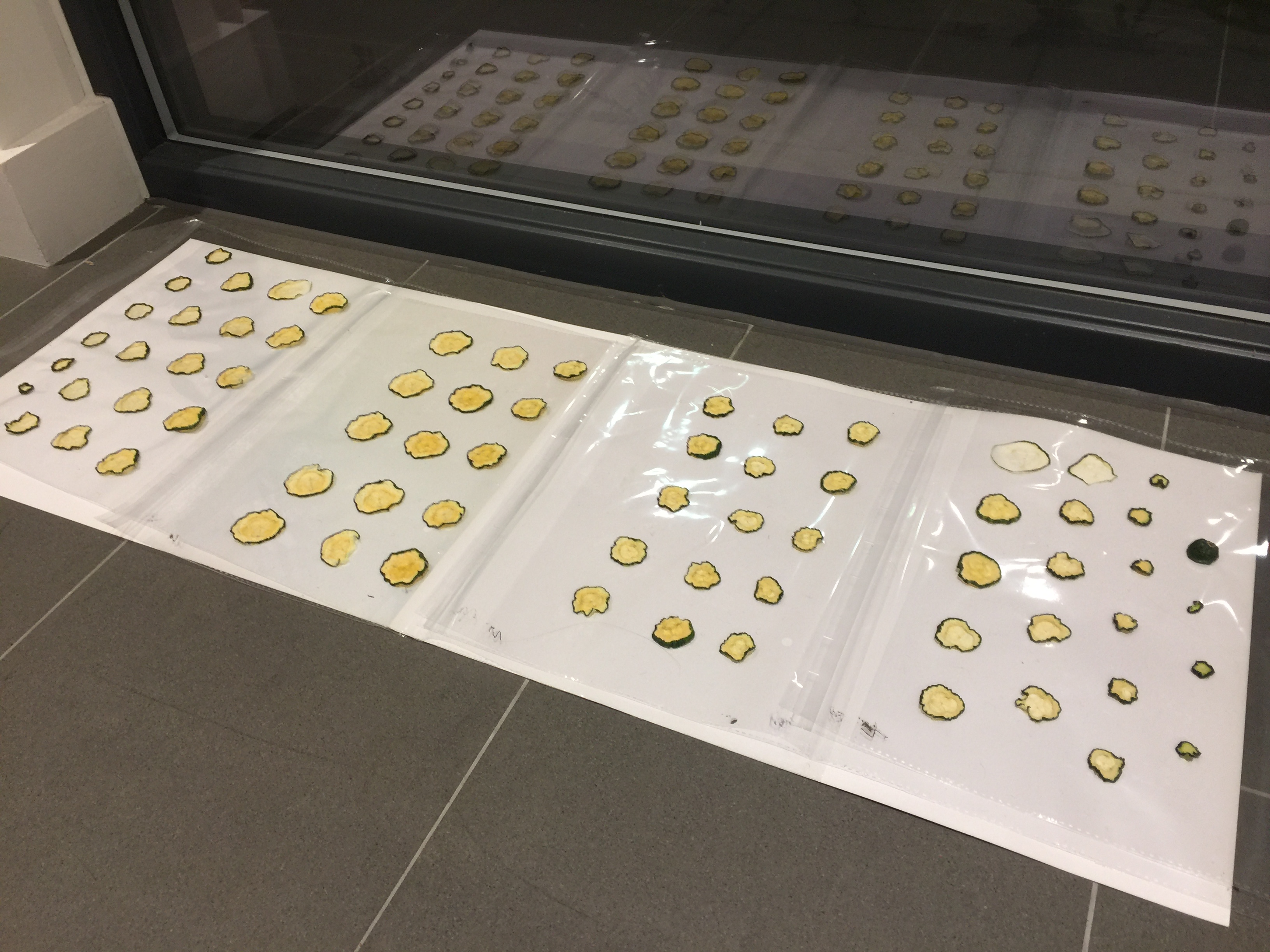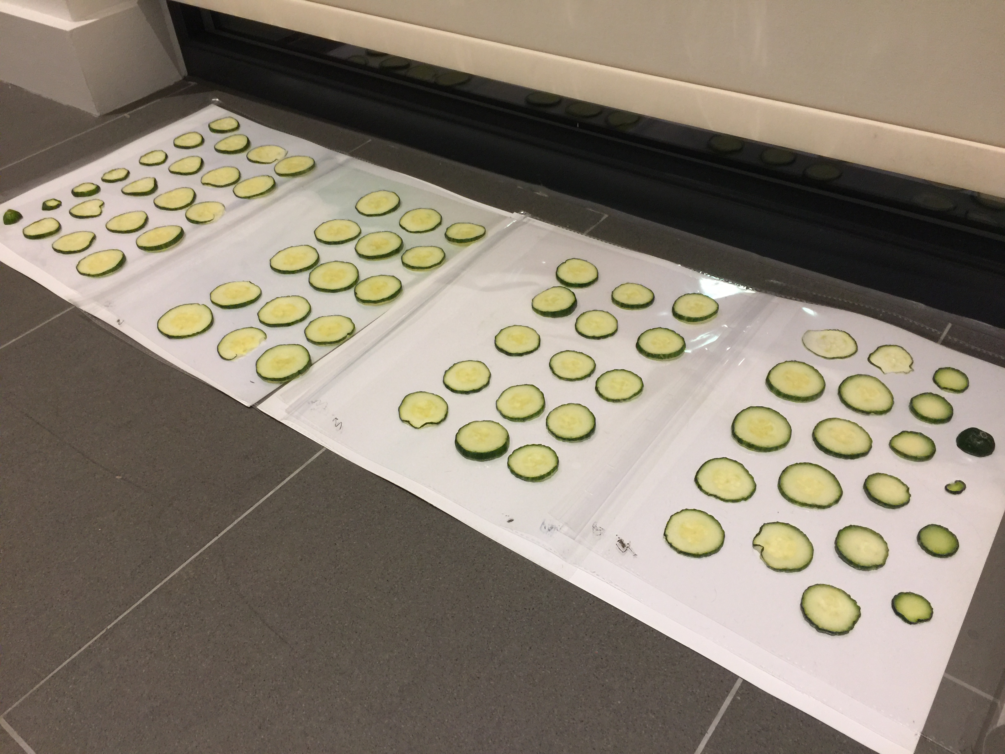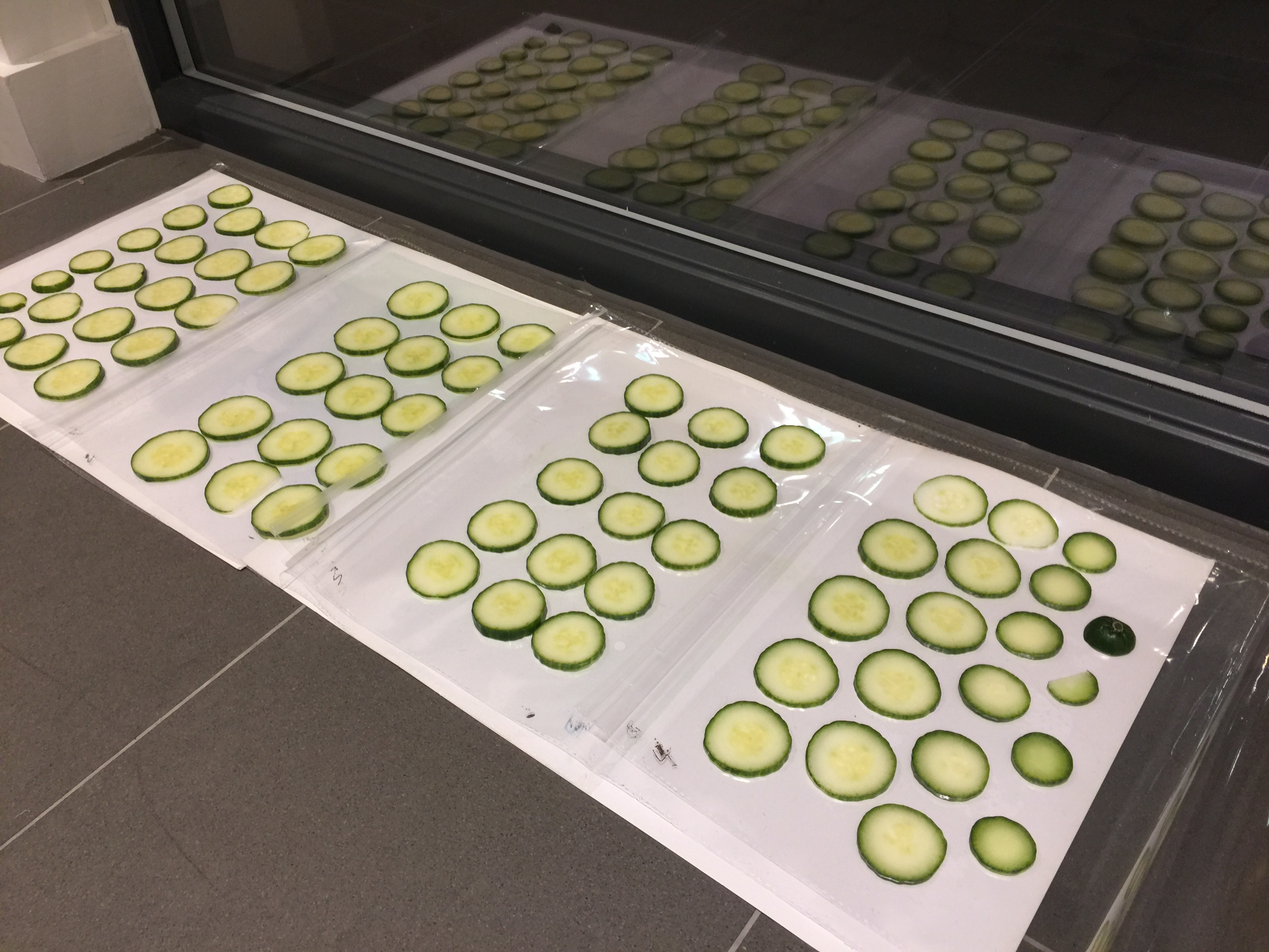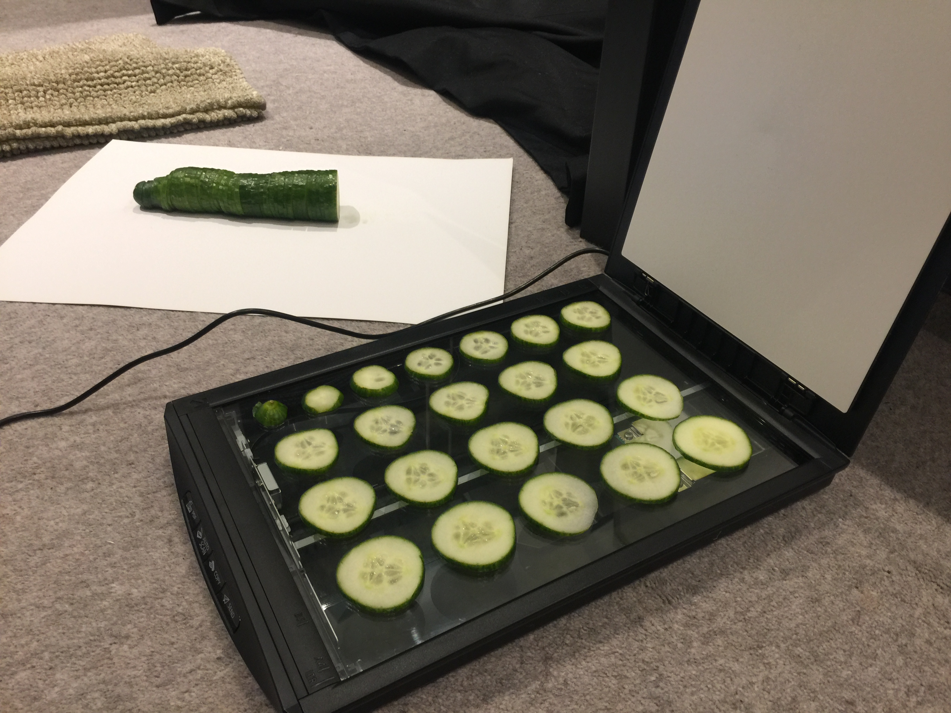 For me, I really keen on working with the visual and auditory montage. Thus, another work was subsequently produced, which is 1′12″. During the preparation of the film 1′12″, I scanned every piece of the sliced cucumber and showed them on the film intern, then matched it with the “tik tok” voice from the clock that to simulate the situation of walking through the cucumber.