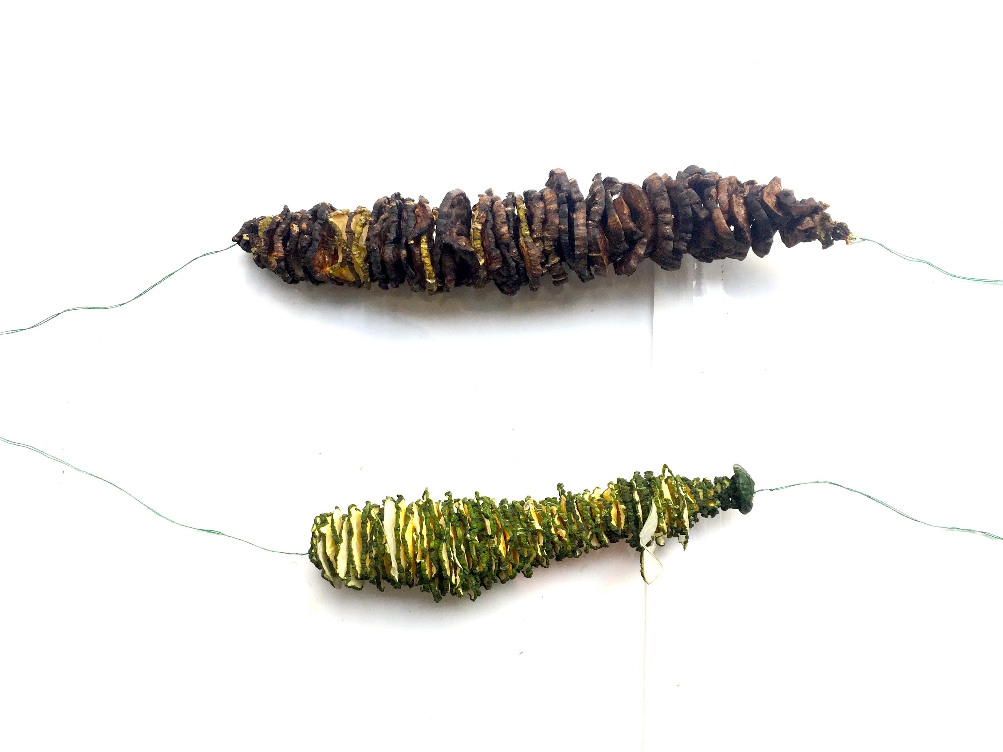 “Peeling into the timeline” simulates a situation of peeling a cucumber into continuous strips, like peeling an apple. The whole stripe looks like a lifetime of experiences, and the veins on it are experiences. It can also be understood as an electrocardiogram of experience. Once life is over, the cucumber is cut off, and the veins on it will not continue.