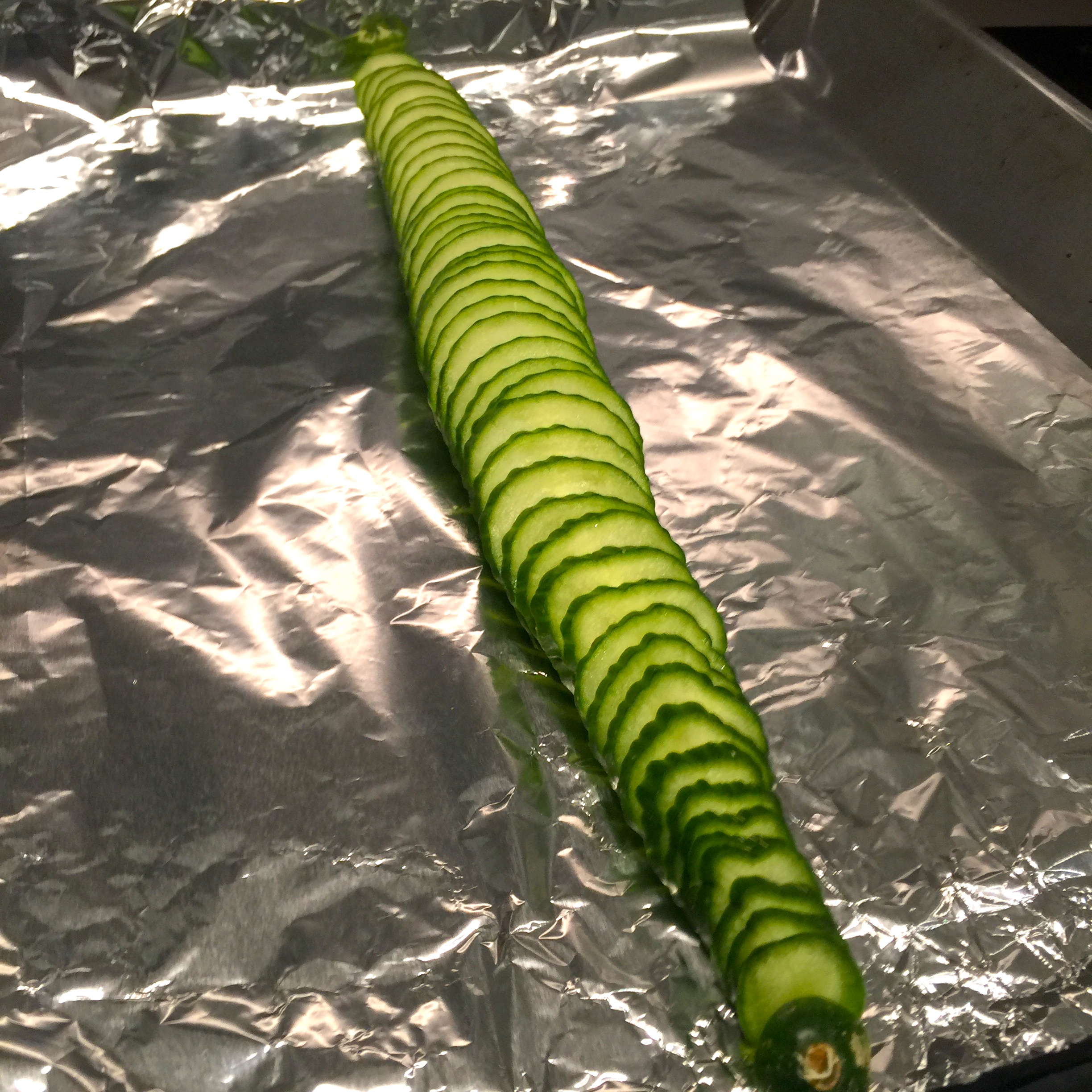 During this section, breaking the integrity of the cucumber into flakes, then dry it and reassemble it in order, which are two small models of time segments. Try to imagine, and this cucumber is the whole life experience for a creature, then, the actions of deconstruction and reorganization can be seen as finding the way to “save time”.