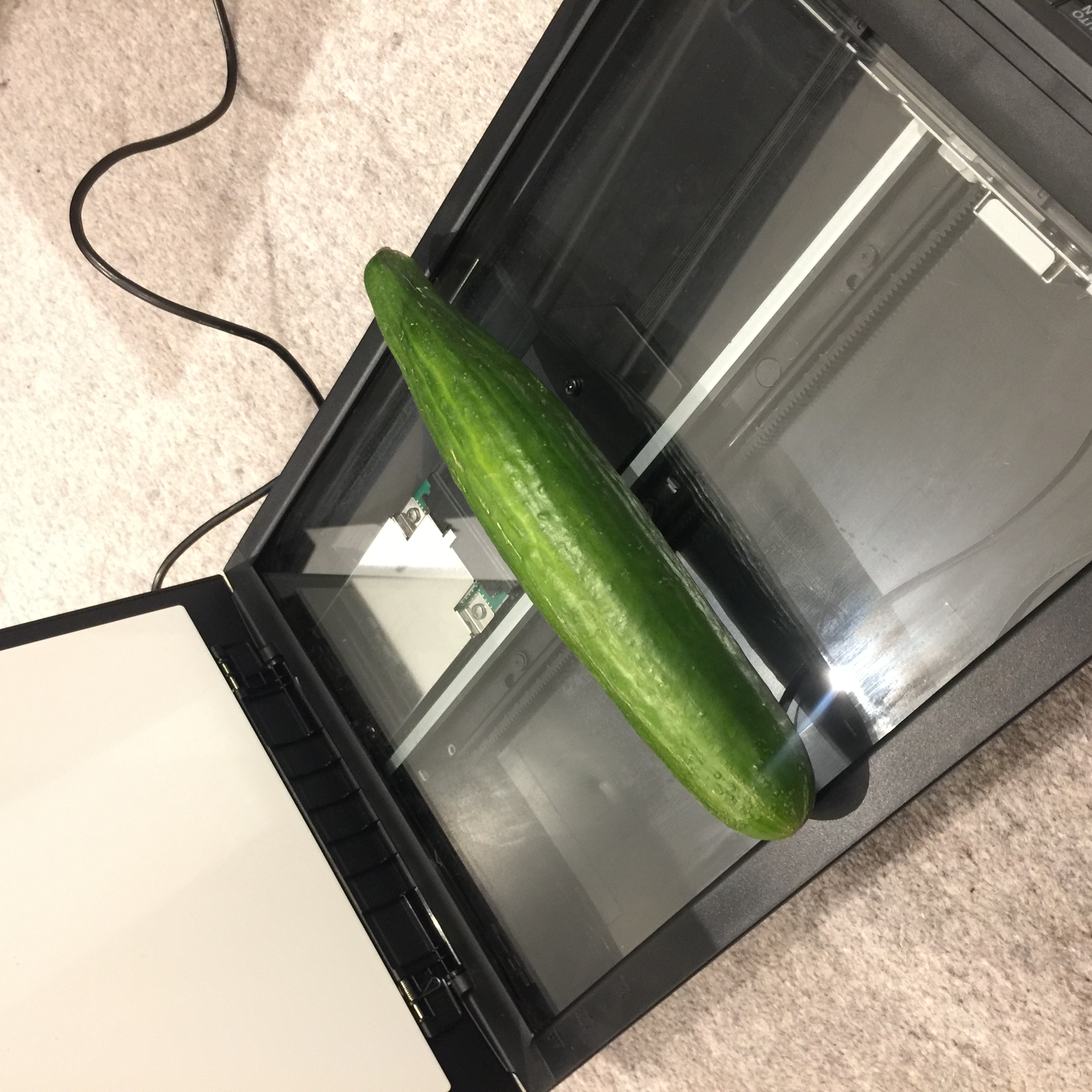 Speaking of the “Cucumber in the flatland”, I used a scanner to scan the cucumber in multiple ways. For example, to keep the scanned cucumber away from the plane of the scanner, then I got a blurred visual image. Or I suddenly moved the cucumber during the scan process, and then a segmented but continuous image was produced. To imagine the scanner is the eye of two-dimensional creature, and the scanned pictures are what it can see. Then the scanned cucumber it sees come in many forms. According to its understanding, what it sees can be different cucumbers or the same one can be transformed into various formats. But from the perspective of the three-dimensional world, this is just a static cucumber. This kind of behaviour quite similar to what a book called “Flatland” illustrated, which is to imagine a state of being in a lower dimension than the human one, and use a dimensionality reduction vision to reverse and examine our existing world. And that is how the name “Cucumber in the flatland” comes from, as well as the title of the whole process: “Qucumber’s Adventures in Flatland”. Therefore, the images of scanned cucumber as the lower-dimensional simulacrum is doing a reflection of a 3D reality.